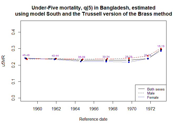 bang_both <- u5mr_trussell(bangladesh, sex = "both", model = "south", svy_year = 1974.3)